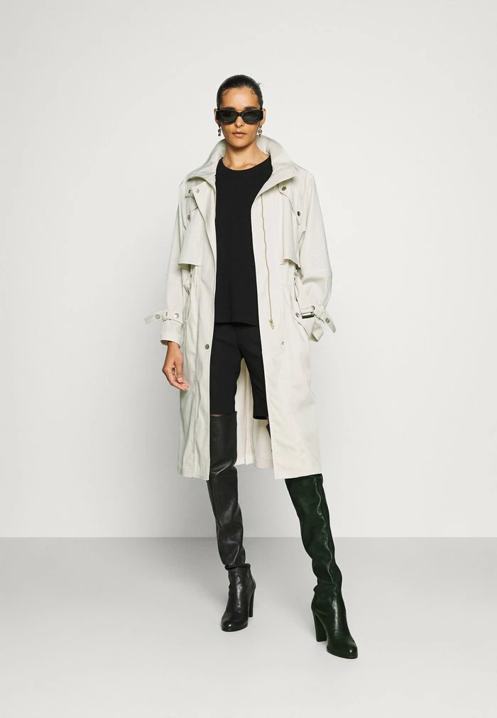 - Details: Belt included, inseam pockets, lined fastener, covered fastener